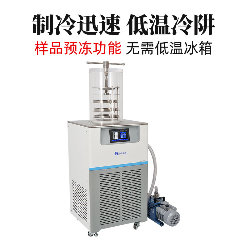 冷凍干燥機是將含水物品預先凍結,然后使其水分在真空狀態(tài)下升華而獲得干燥物品的一種技術方法。經冷凍干燥后物品理化性質、生物特性基本不變,易于長期保存,復水后物品能迅速恢復到凍干前的形態(tài),并且能保持其原有的生化特性。因此,冷凍干燥機在化工、食品、醫(yī)藥、生物等制品的制備和檢測領域得到廣泛應用。